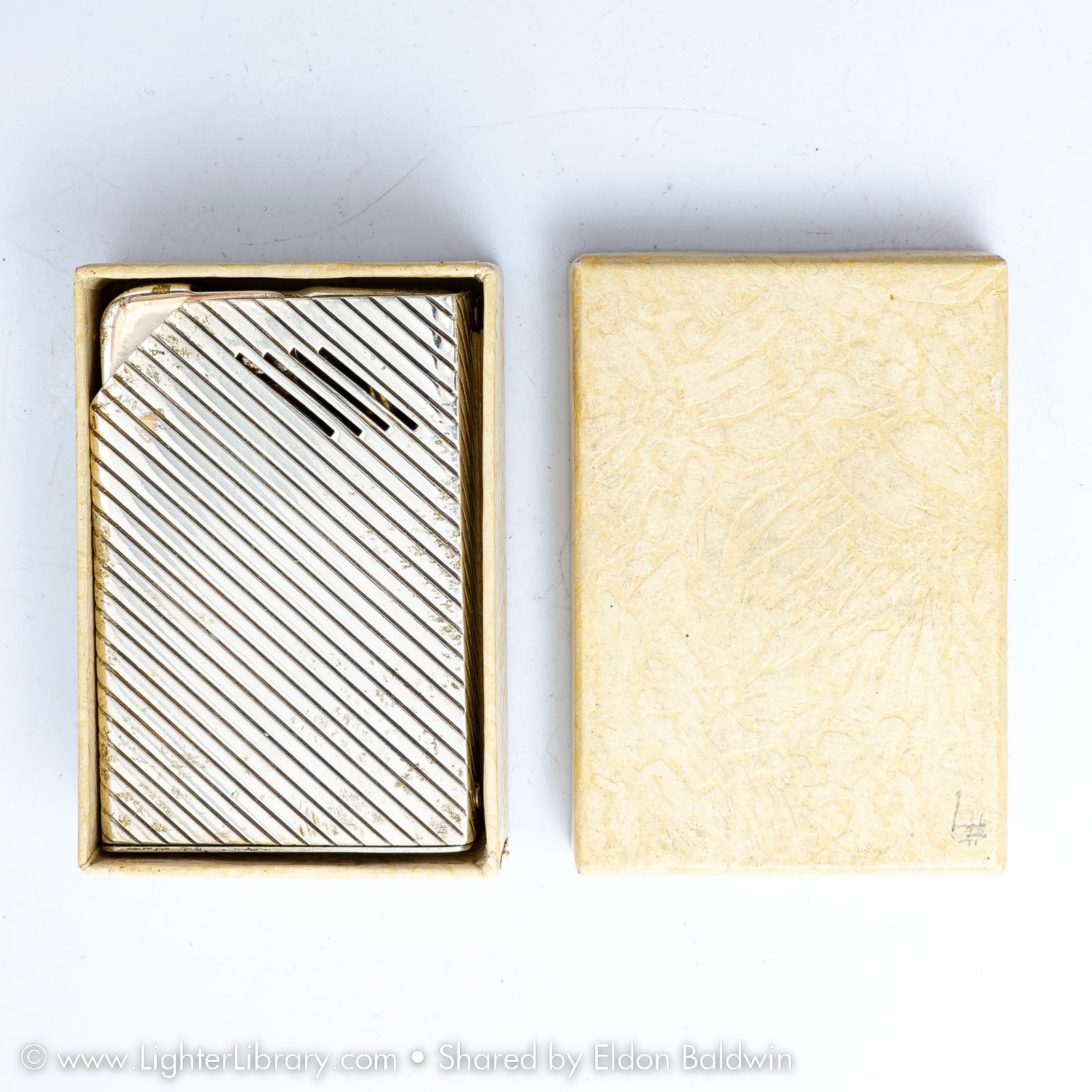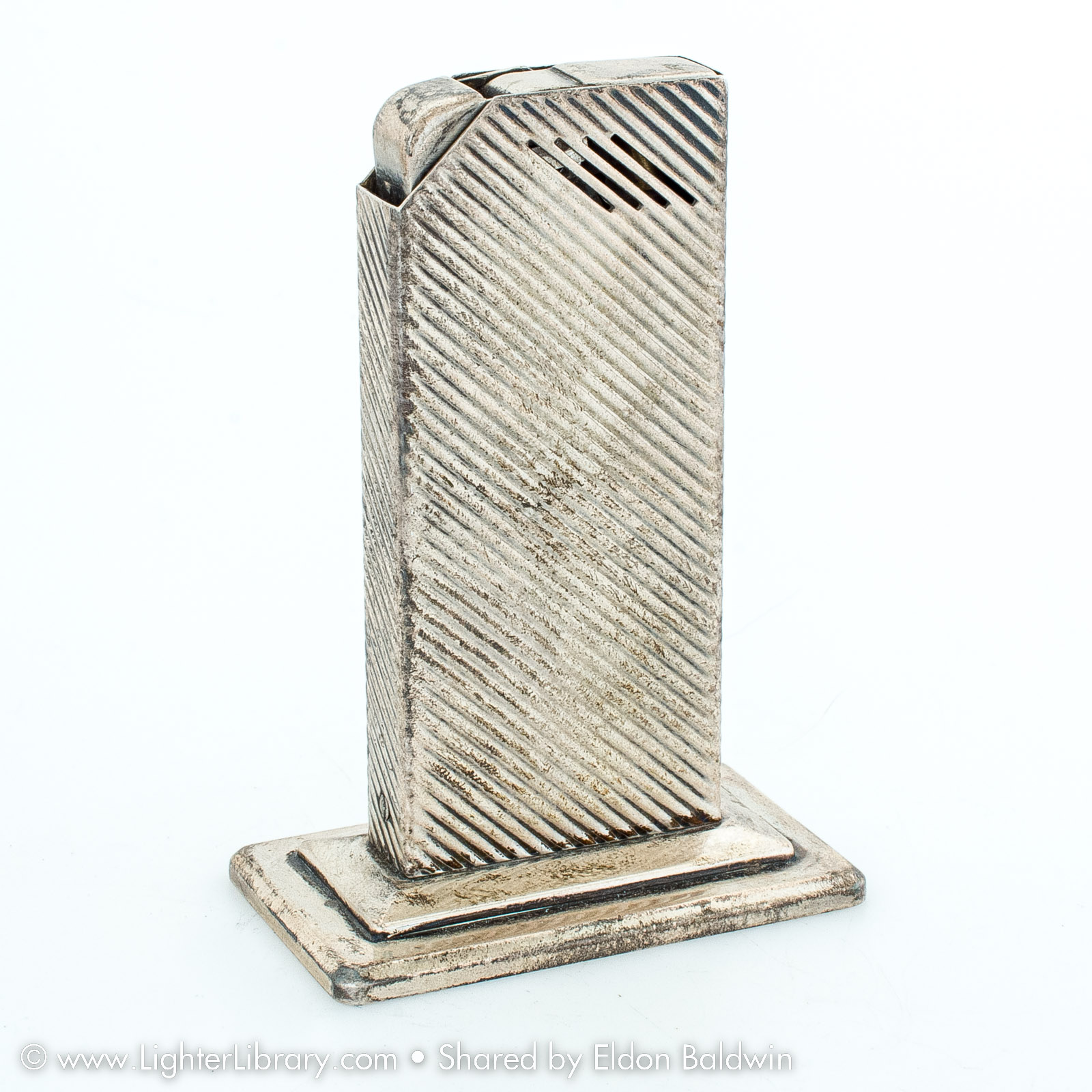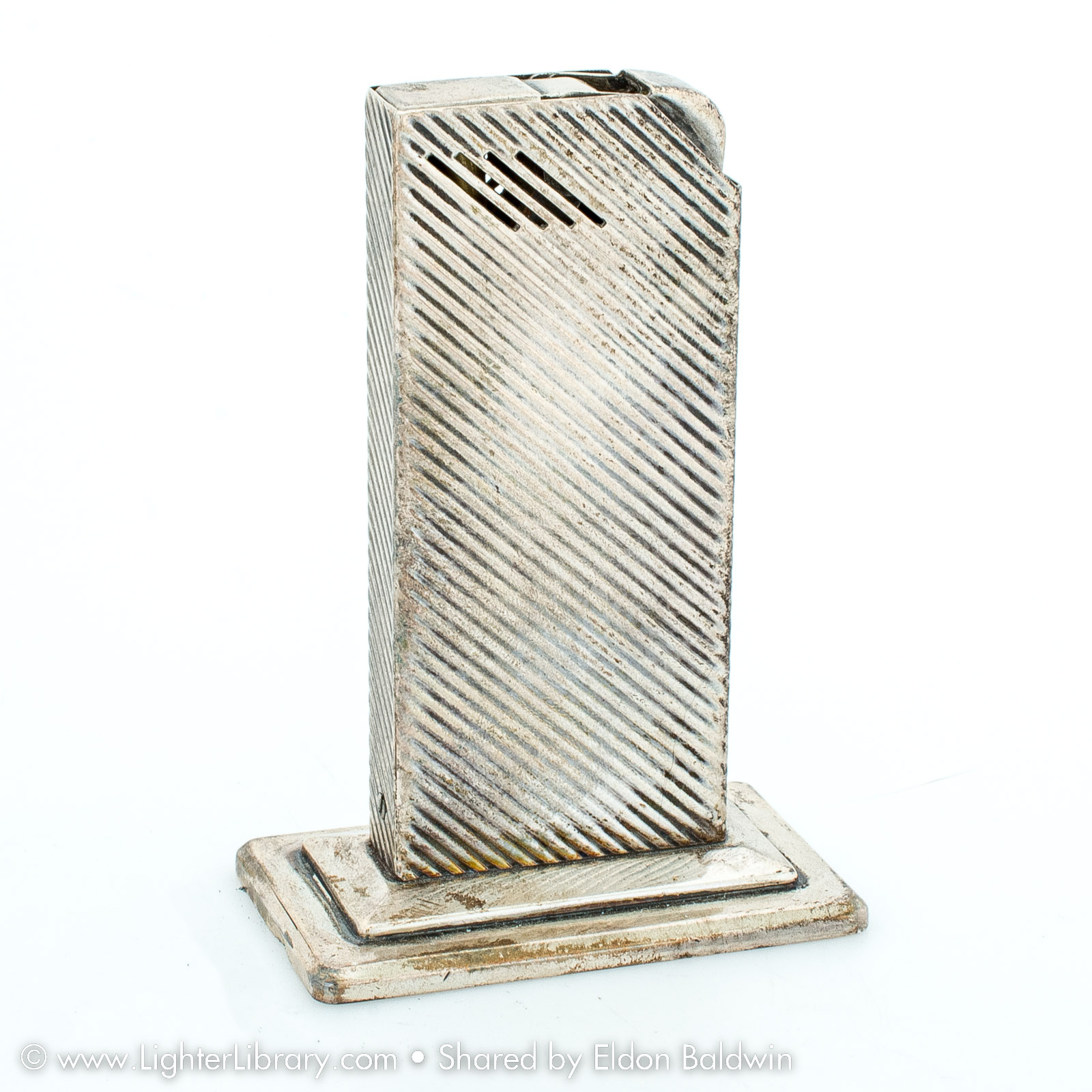 After Strikalite, Ltd. was forced to close, Harvey Avedon started a jewelry manufacturing business. He designed the Avedon Lighter in 1942 for his soon-to-be-wife Drusilla. Pocket and table versions of the Avedon Lighter were produced with sterling silver and 14k gold casings. (EB)