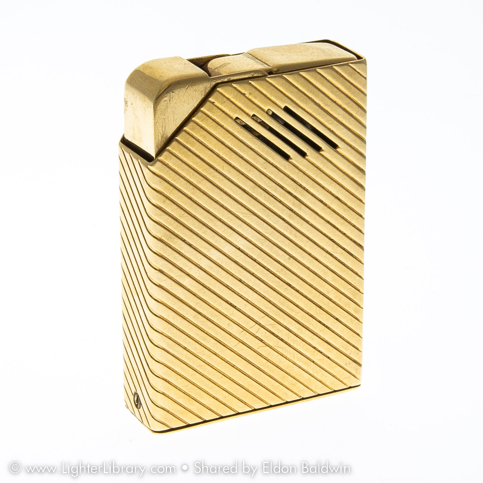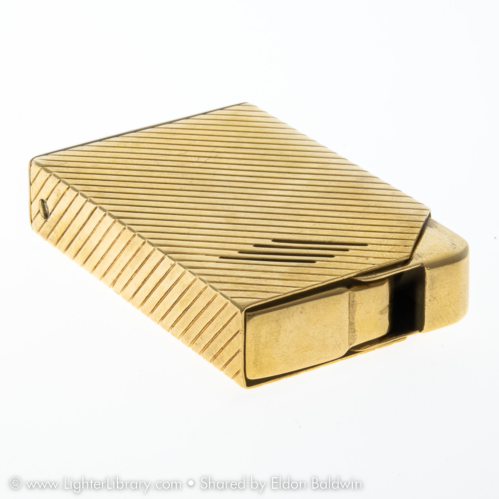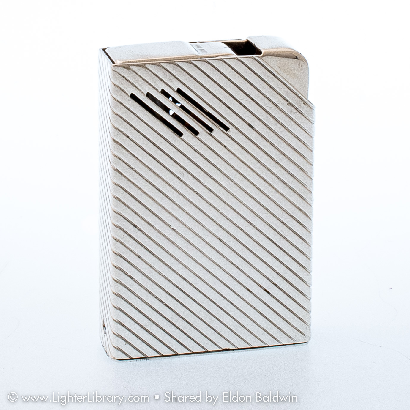 After Strikalite, Ltd. was forced to close, Harvey Avedon started a jewelry manufacturing business. He designed the Avedon Lighter in 1942 for his soon-to-be-wife Drusilla. Pocket and table versions of the Avedon Lighter were produced with sterling silver and 14k gold casings. (EB)