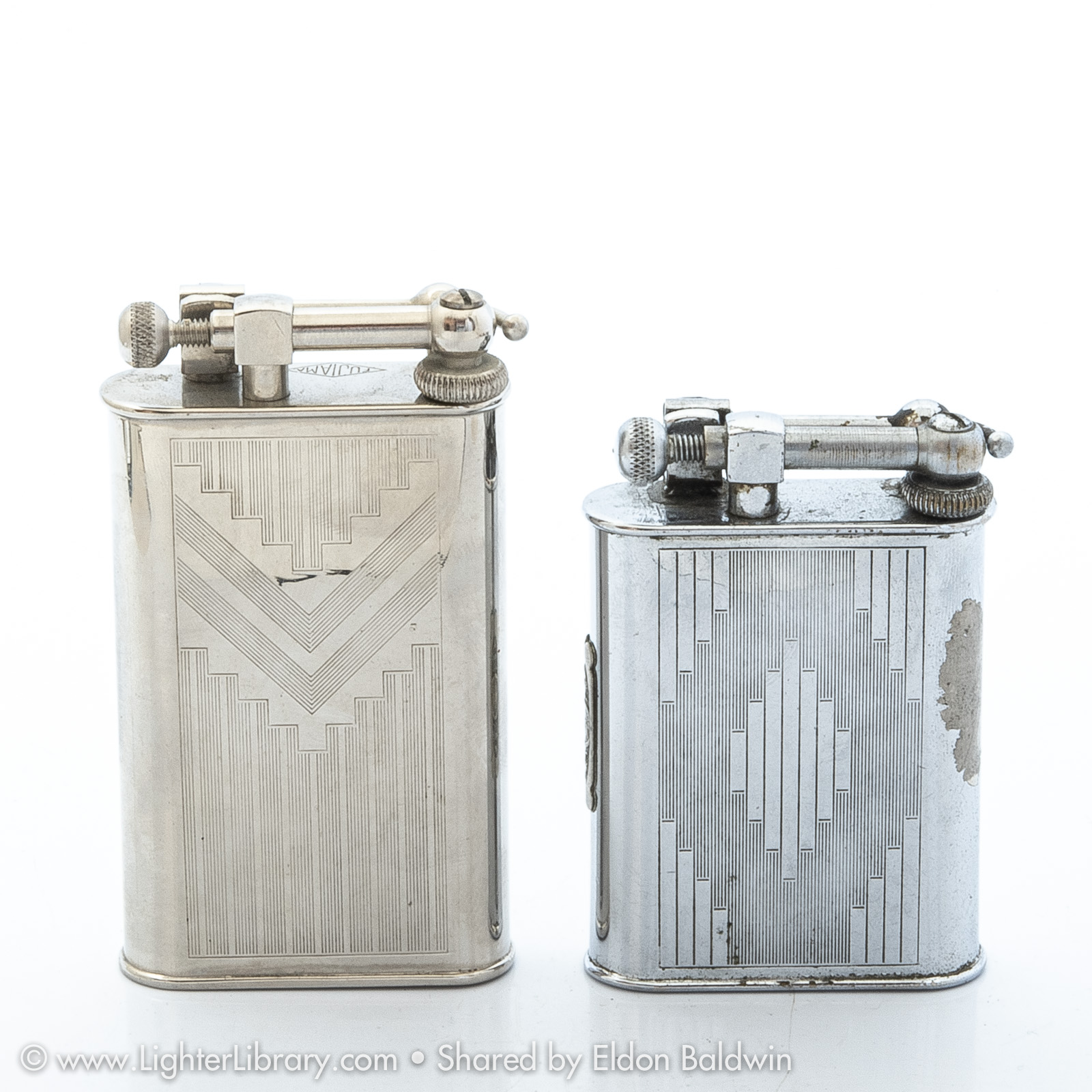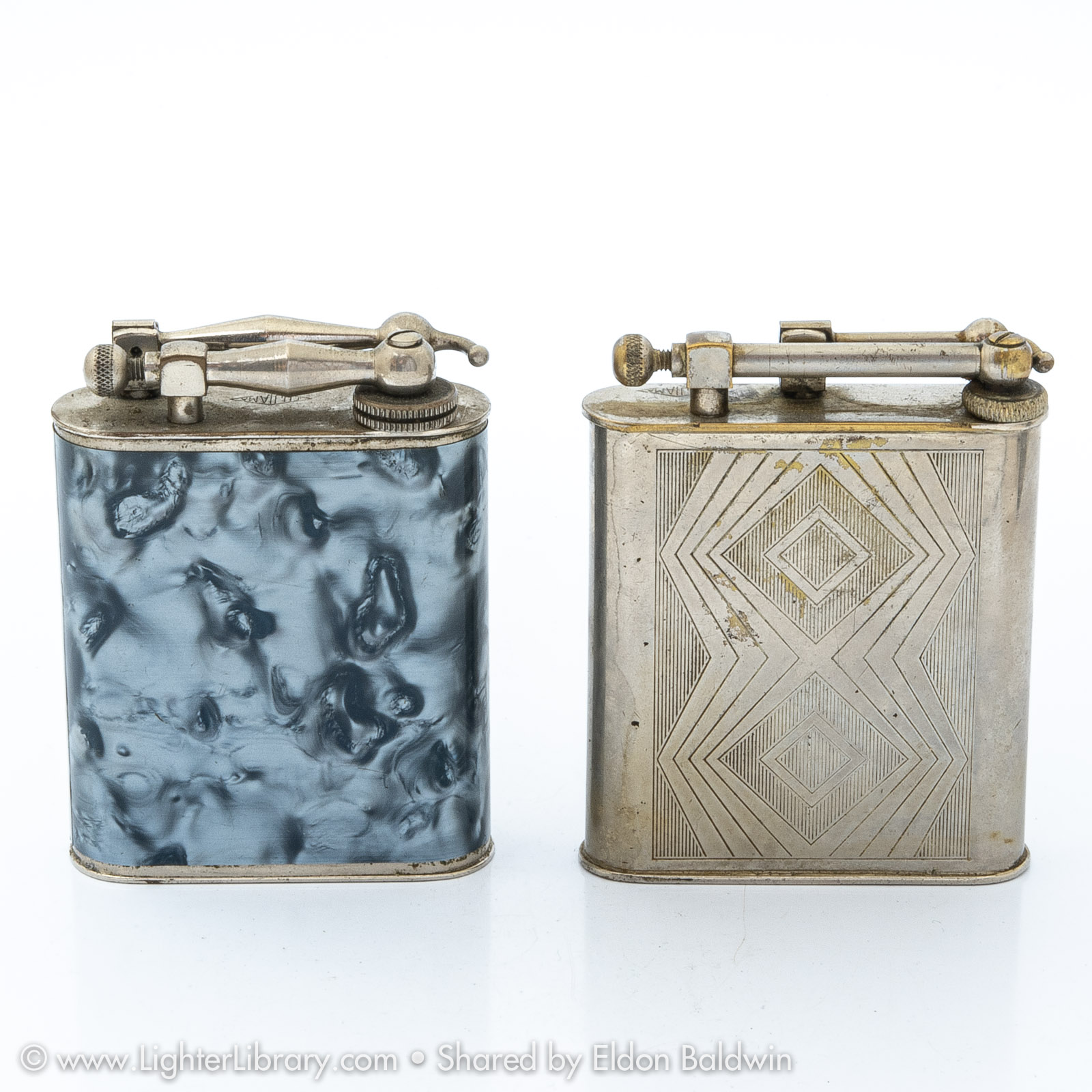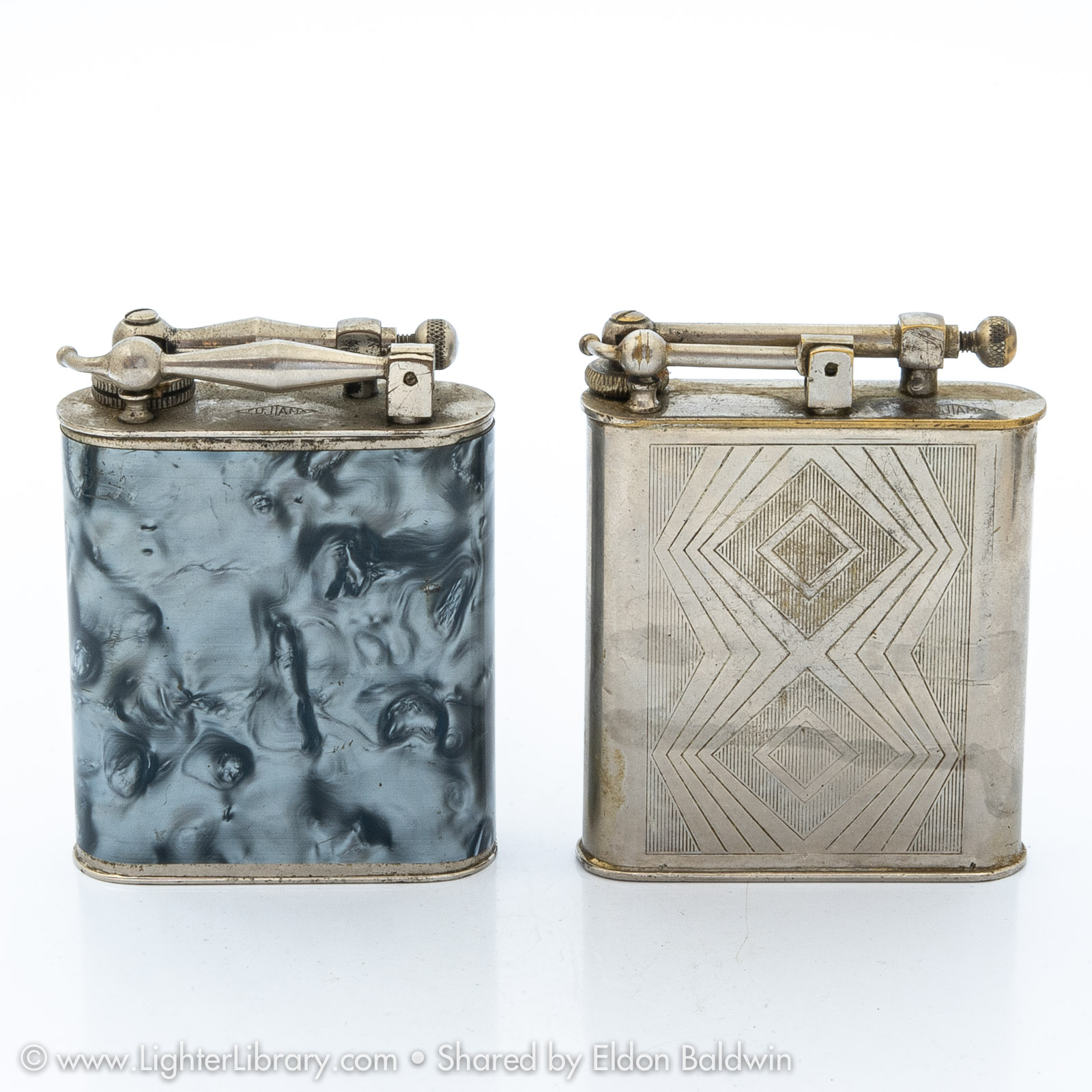 Frequently mis-identified as Polaire models, the design for Fujiama table lighters was patented by Gaston Gaubert in 1936. Gaubert manufactured lift arm table lighters in a variety of shapes and sizes using the Fujiama and L'Aquilon brand names. Fujiama brand pocket models were also produced. (EB)