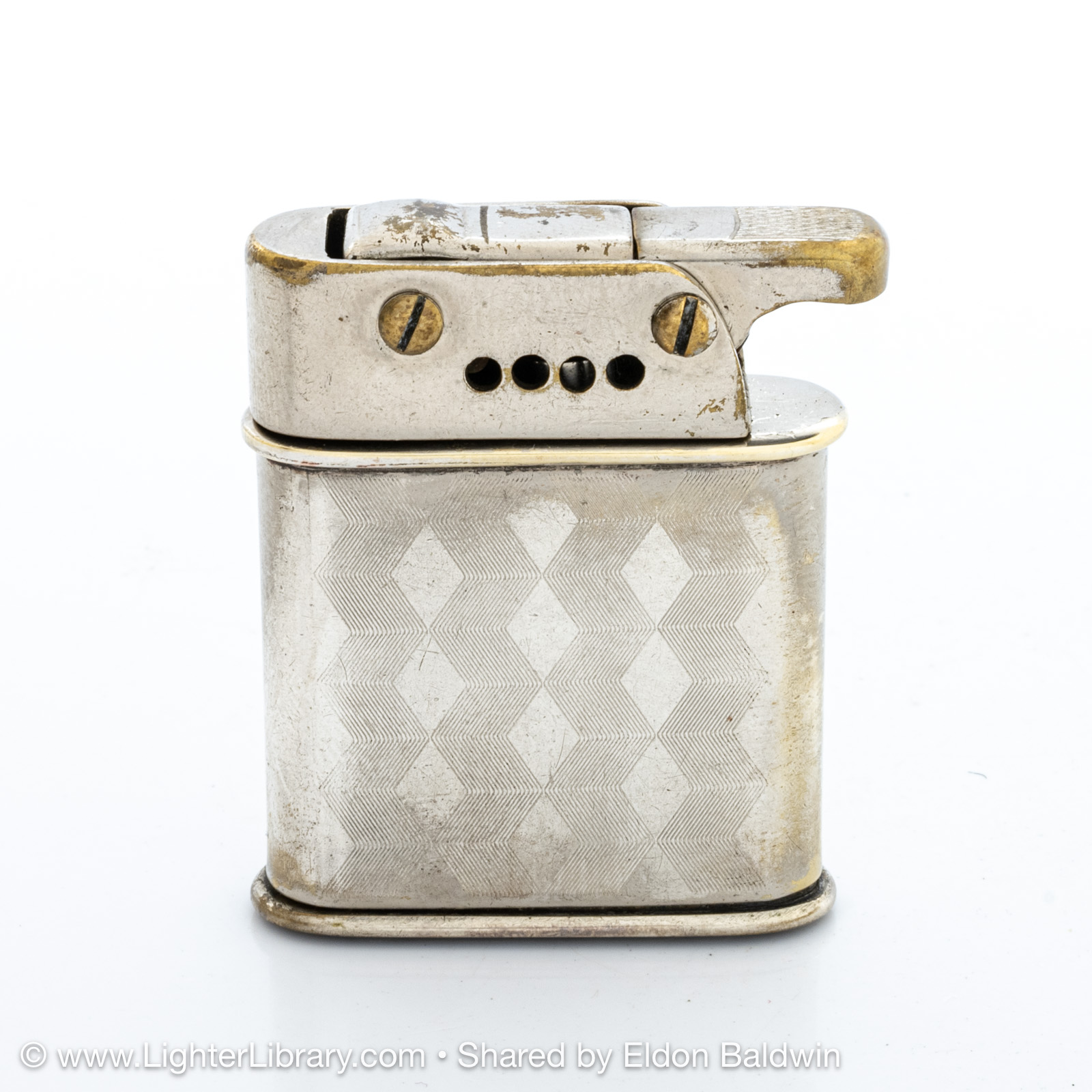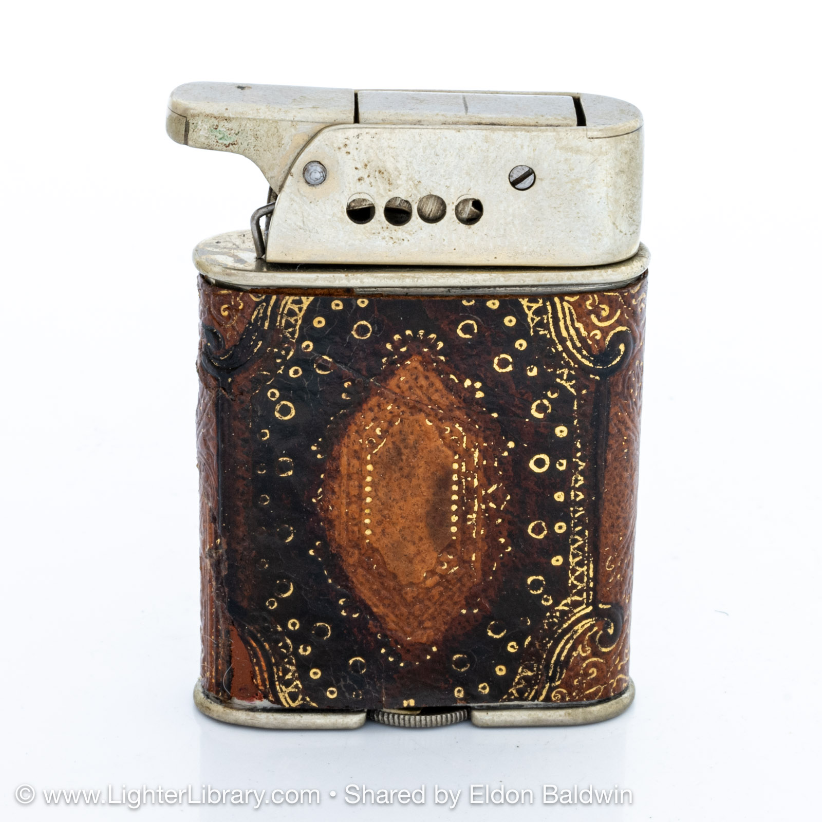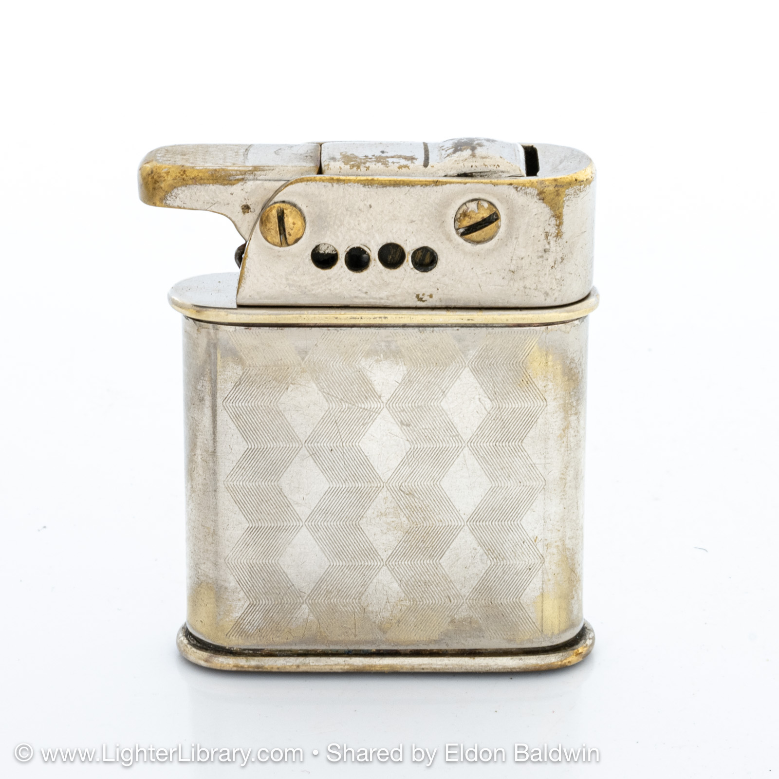 Designed by Adolf Kinzinger in 1929, Polaris are the first full automatic lighters produced by Sarastro. Several Polaris pocket and table models were produced with at least two mechanism and fuel tank variations. It's patent is assigned to Art Metal Works in the United States, likely because it was legally deemed to infringe Ronson's patented "one motion" design. (EB)