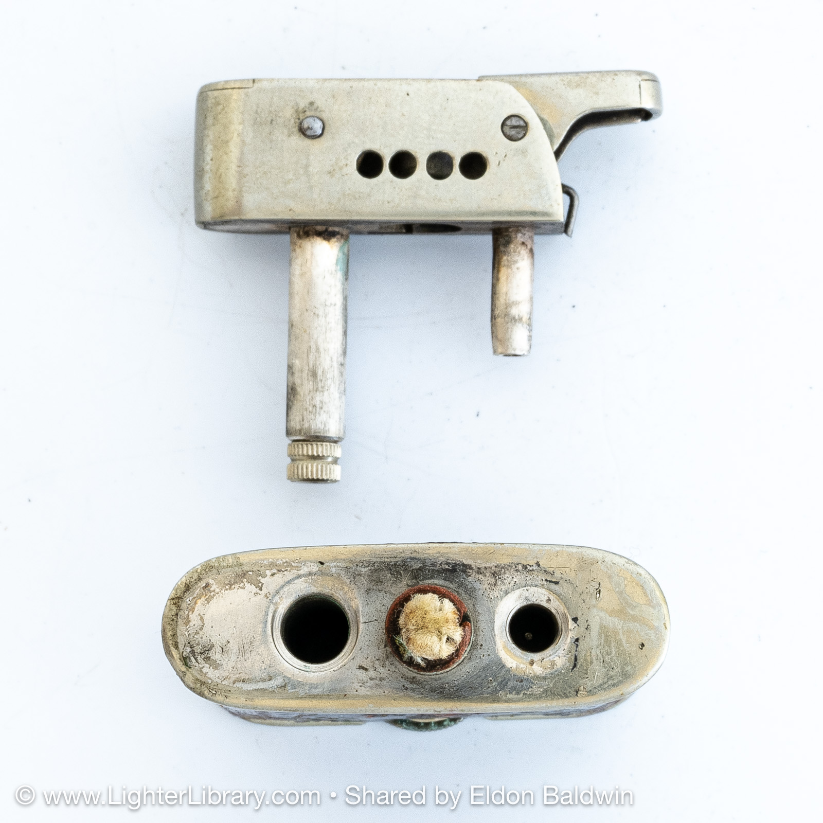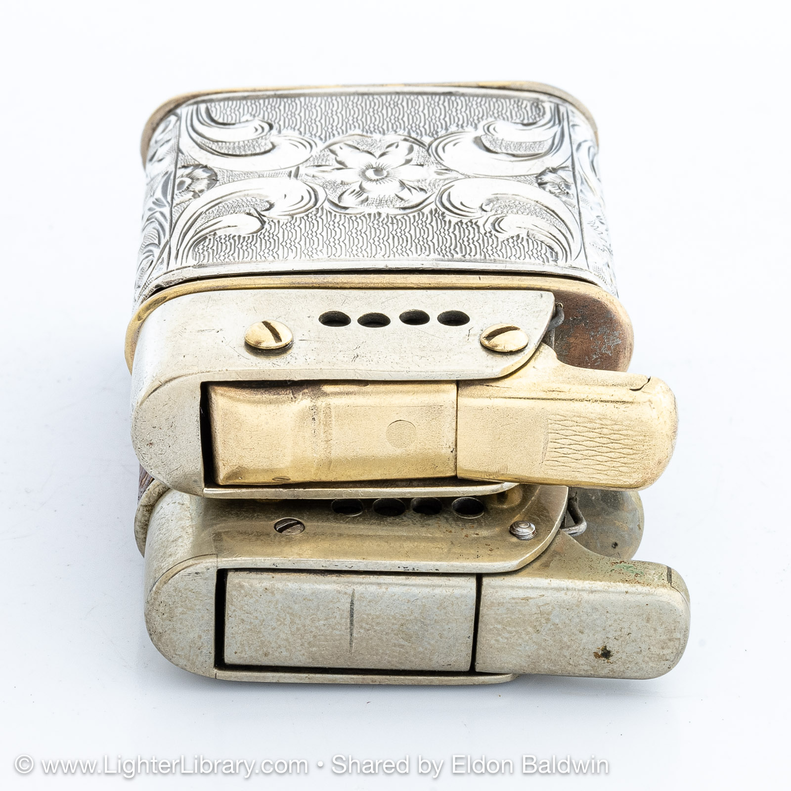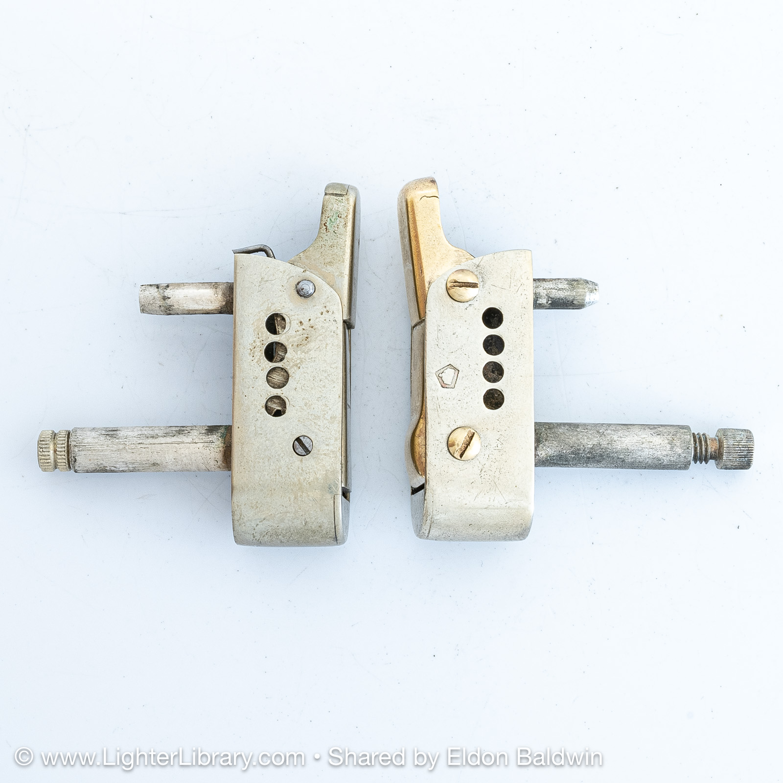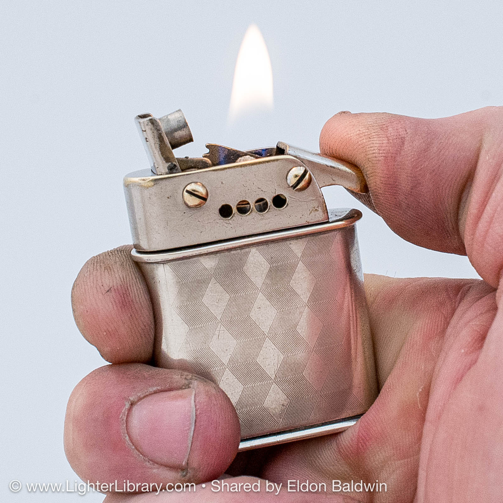 Designed by Adolf Kinzinger in 1929, Polaris are the first full automatic lighters produced by Sarastro. Several Polaris pocket and table models were produced with at least two mechanism and fuel tank variations. It's patent is assigned to Art Metal Works in the United States, likely because it was legally deemed to infringe Ronson's patented "one motion" design. (EB)