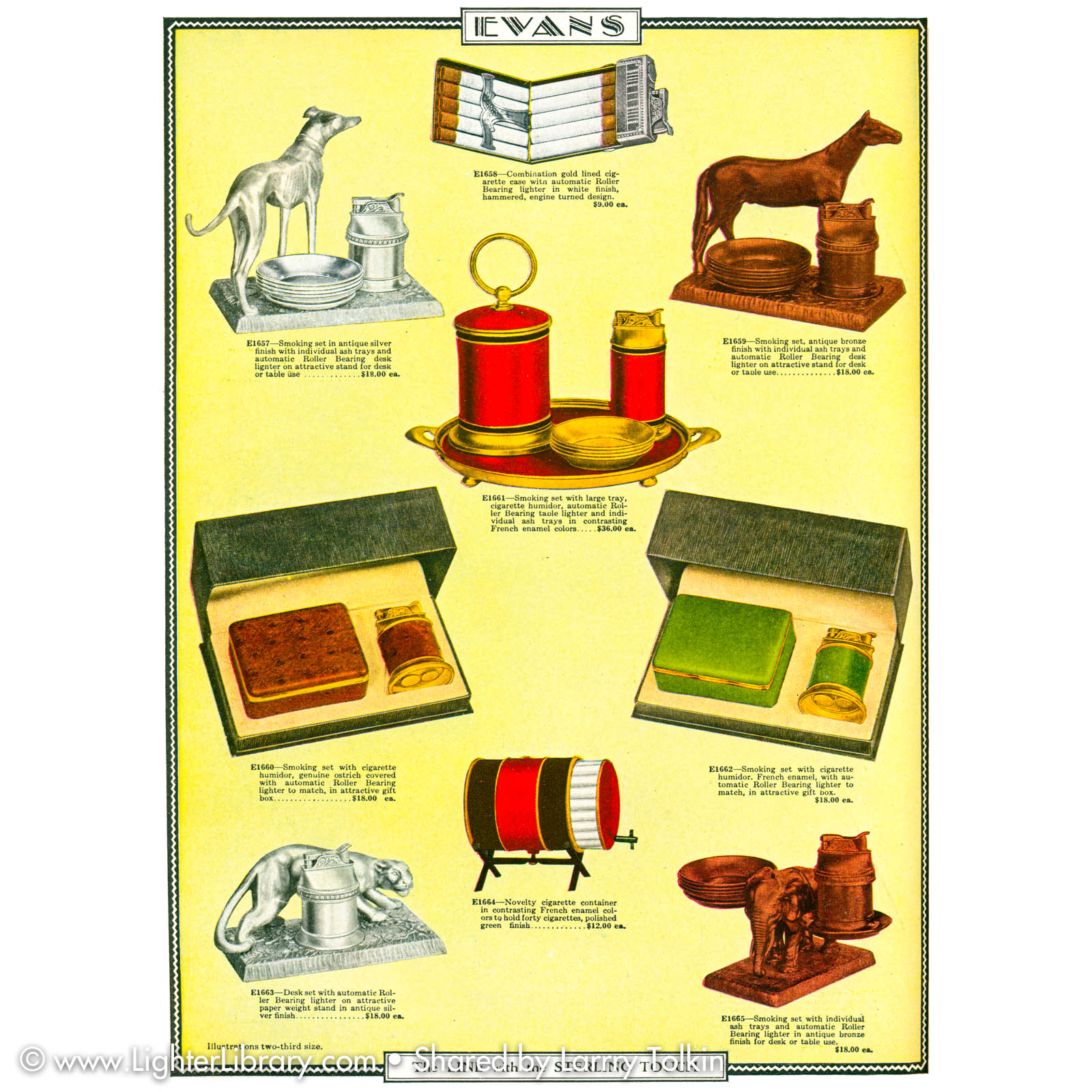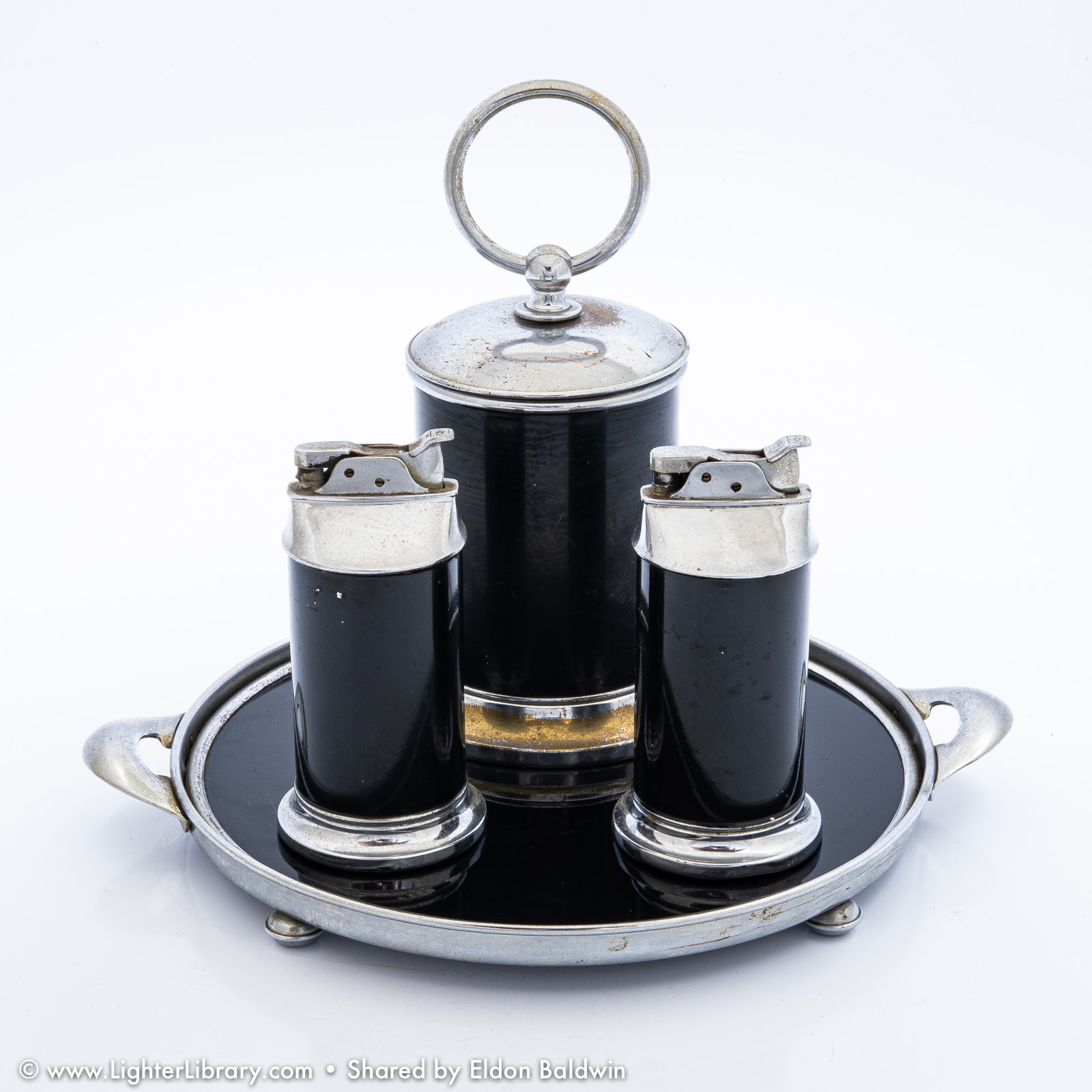 matched Roller Bearing lighters, cigarette dispenser & serving tray