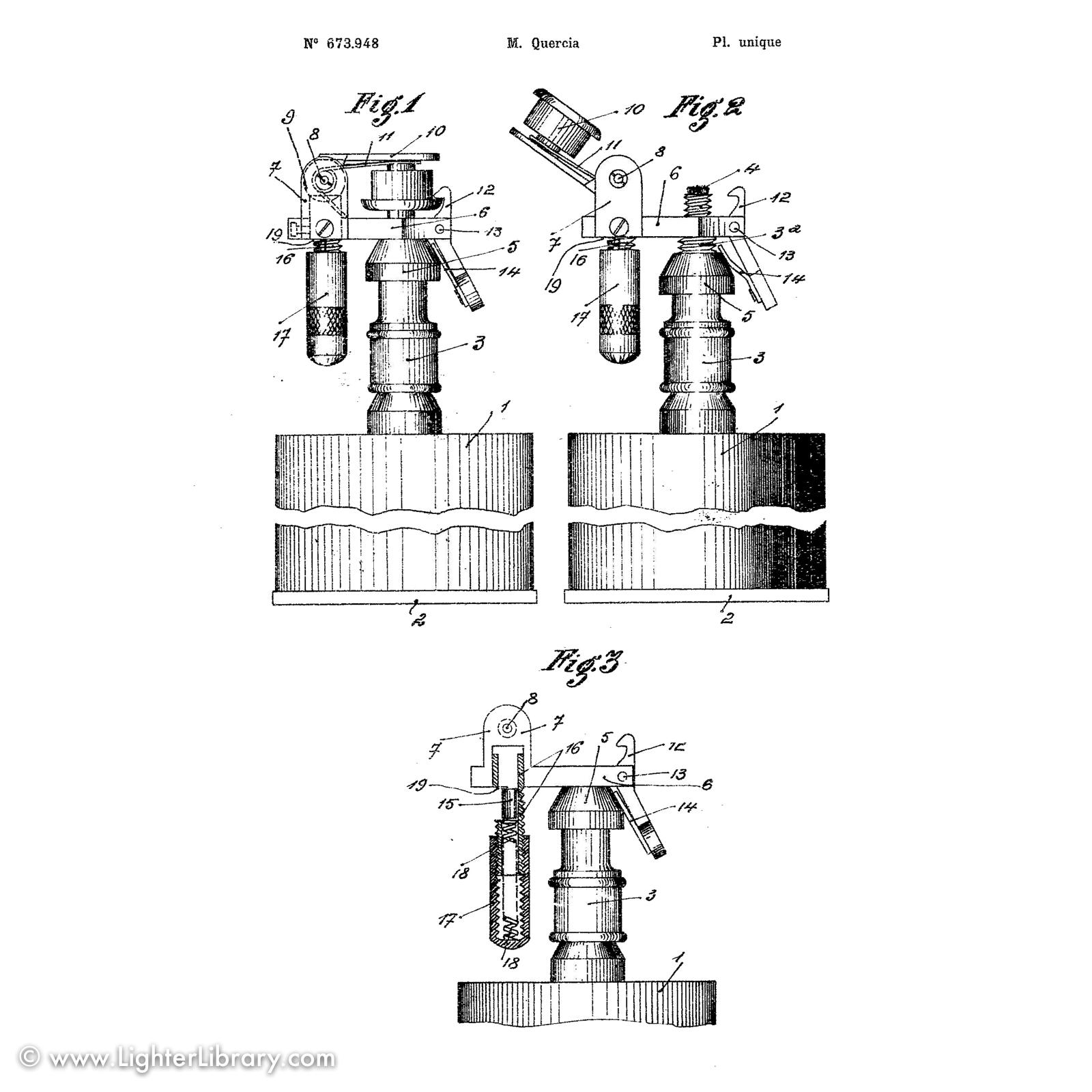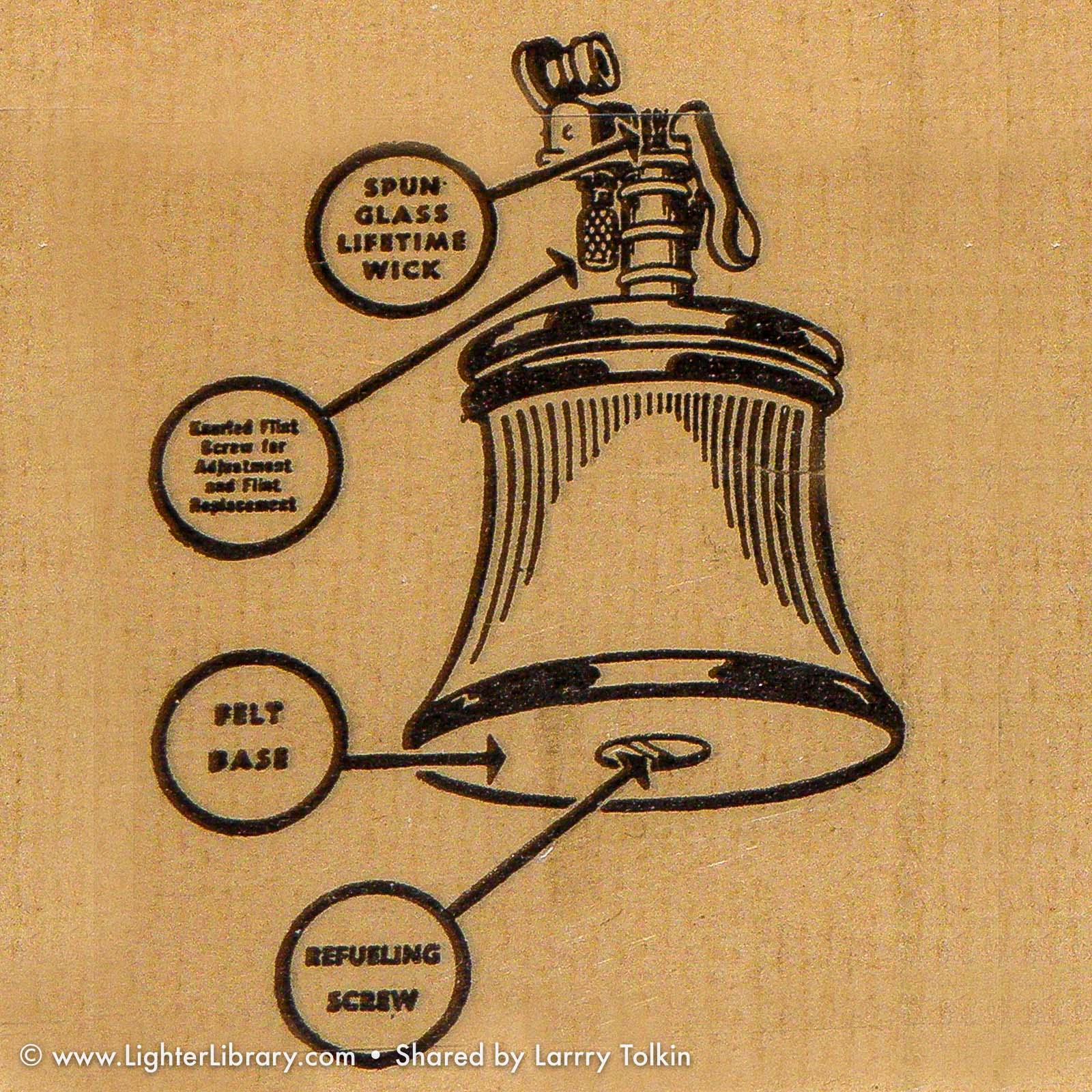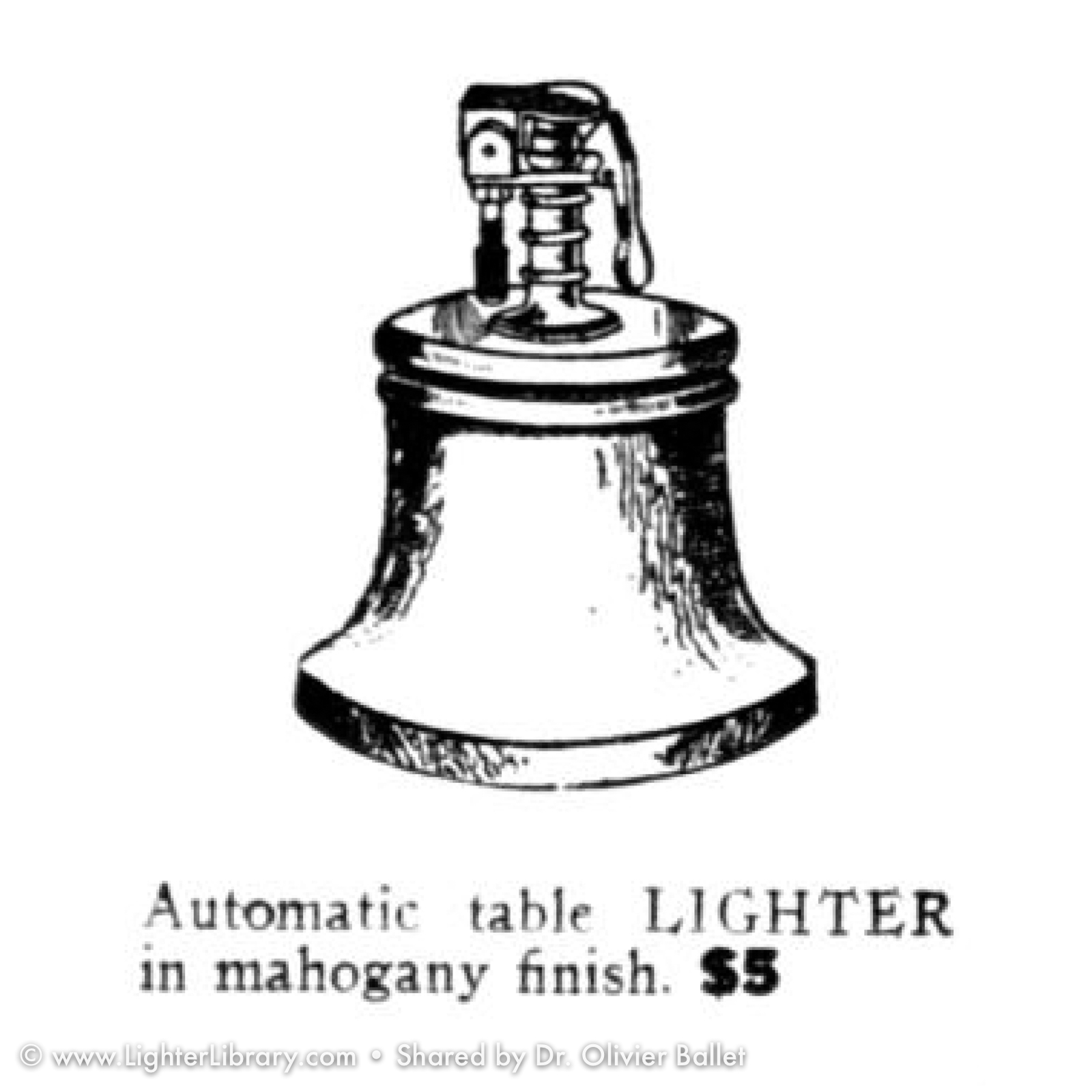 Everflow table lighters are a variation of the Quercia Eclair produced after World War 2 during the late '40s. Though based on Marcel Quercia's 1930 semi-automatic mechanism design, the Everflow uses a distinctive coil-type spring to actuate its mechanism. This is both a visible distinction for identification and a notable improvement to the original design. Everflow Lighters were only produced with plastic and wooden bases, all-metal designs were not offered. (EB)
