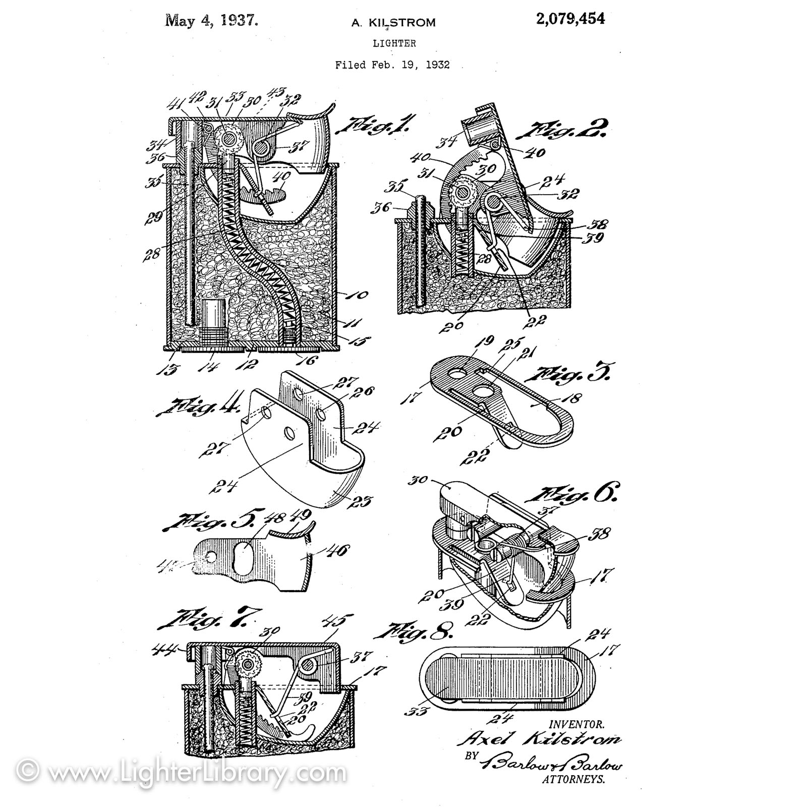 Produced during the 1930s, there is very little known documentation of De Luxe Golden Wheel Lighter and the available patent information is difficult to deduce. Axel Kilstrom filed two different U.S. utility patents for lighter designs in 1932, both patents were assigned to Lederer Bros.
