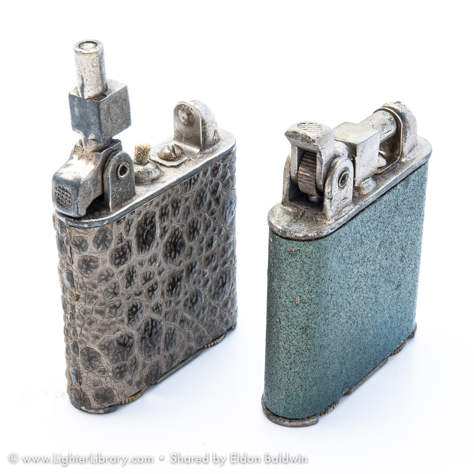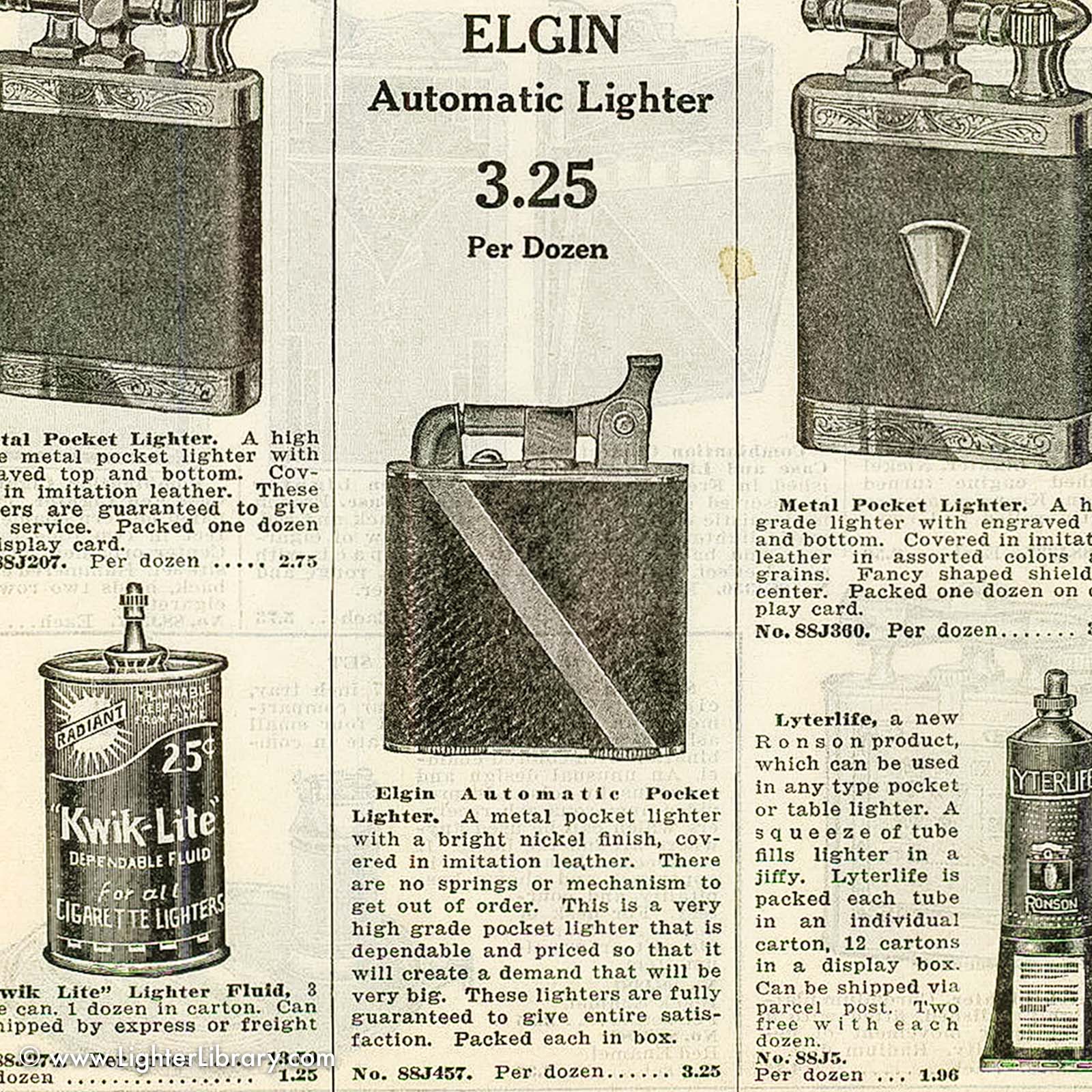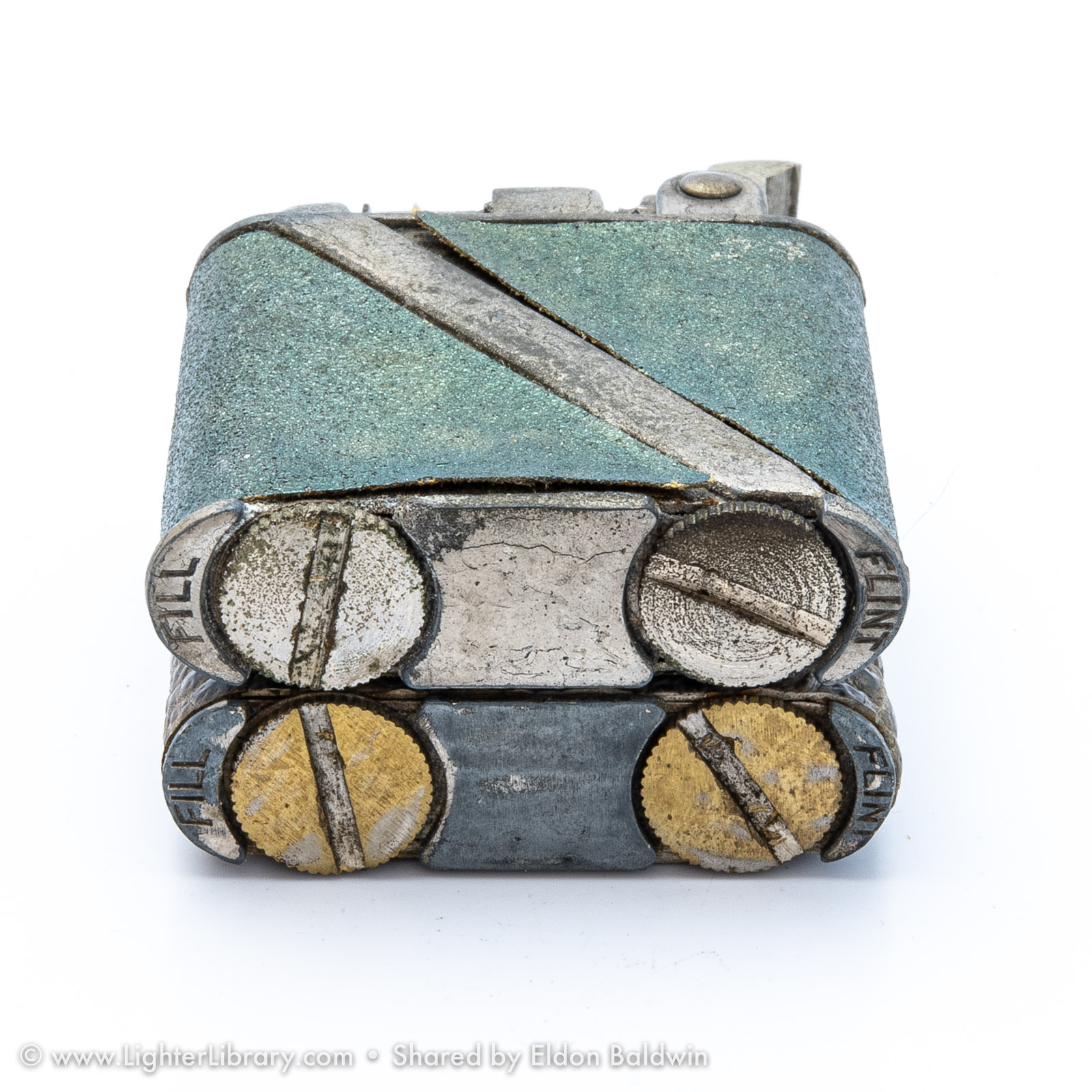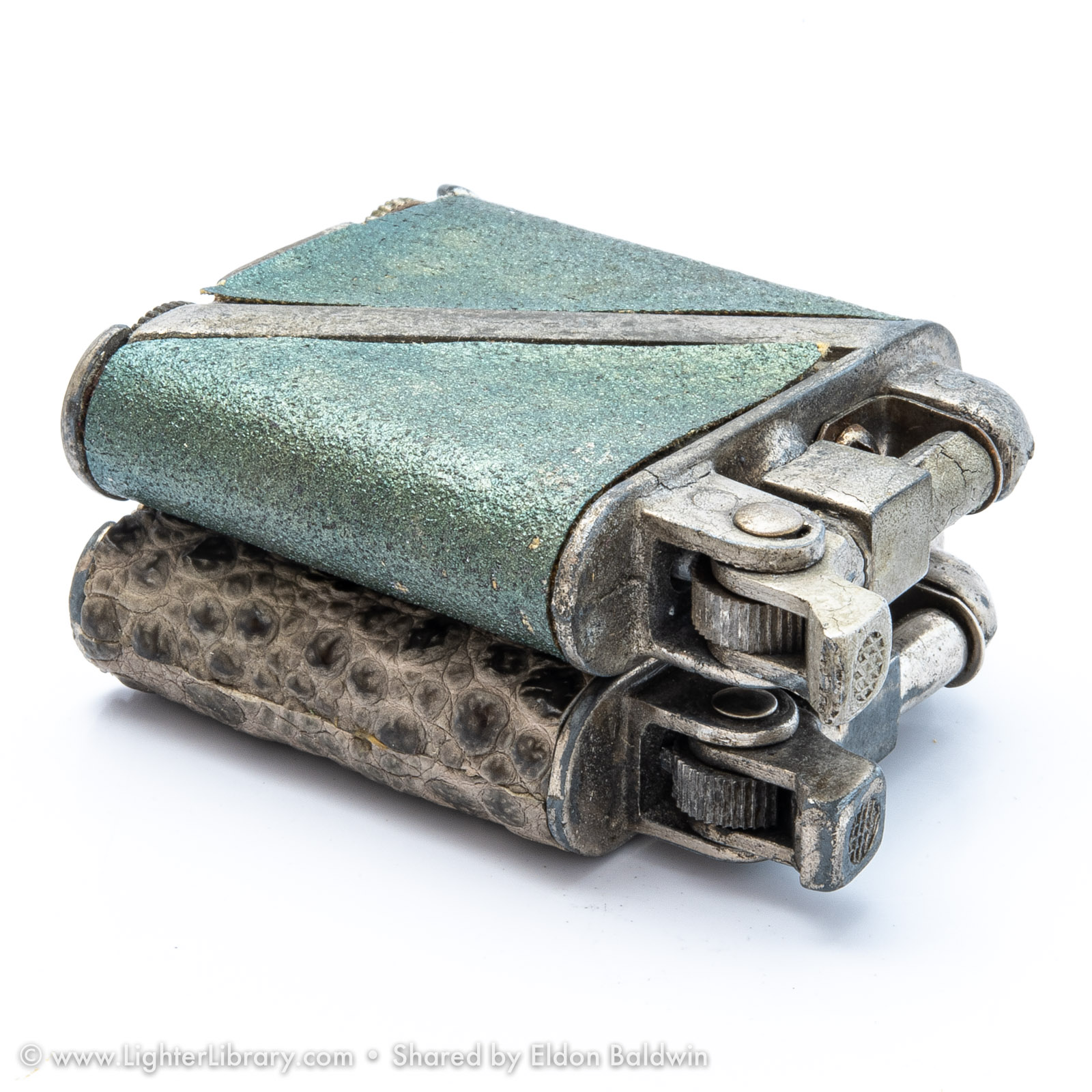 The Elgin-Automatic uses a simple, semi-automatic mechanism that's quite similar to the 1928 Carlton Automatic. Patented by Henry Schiff in 1929, Elgin Automatics are rare and known examples are unbranded. Like many lighters manufactured by Fay, the Elgin Automatic is made from alloy that can get brittle with age so they are often damaged and easily broken. (EB)