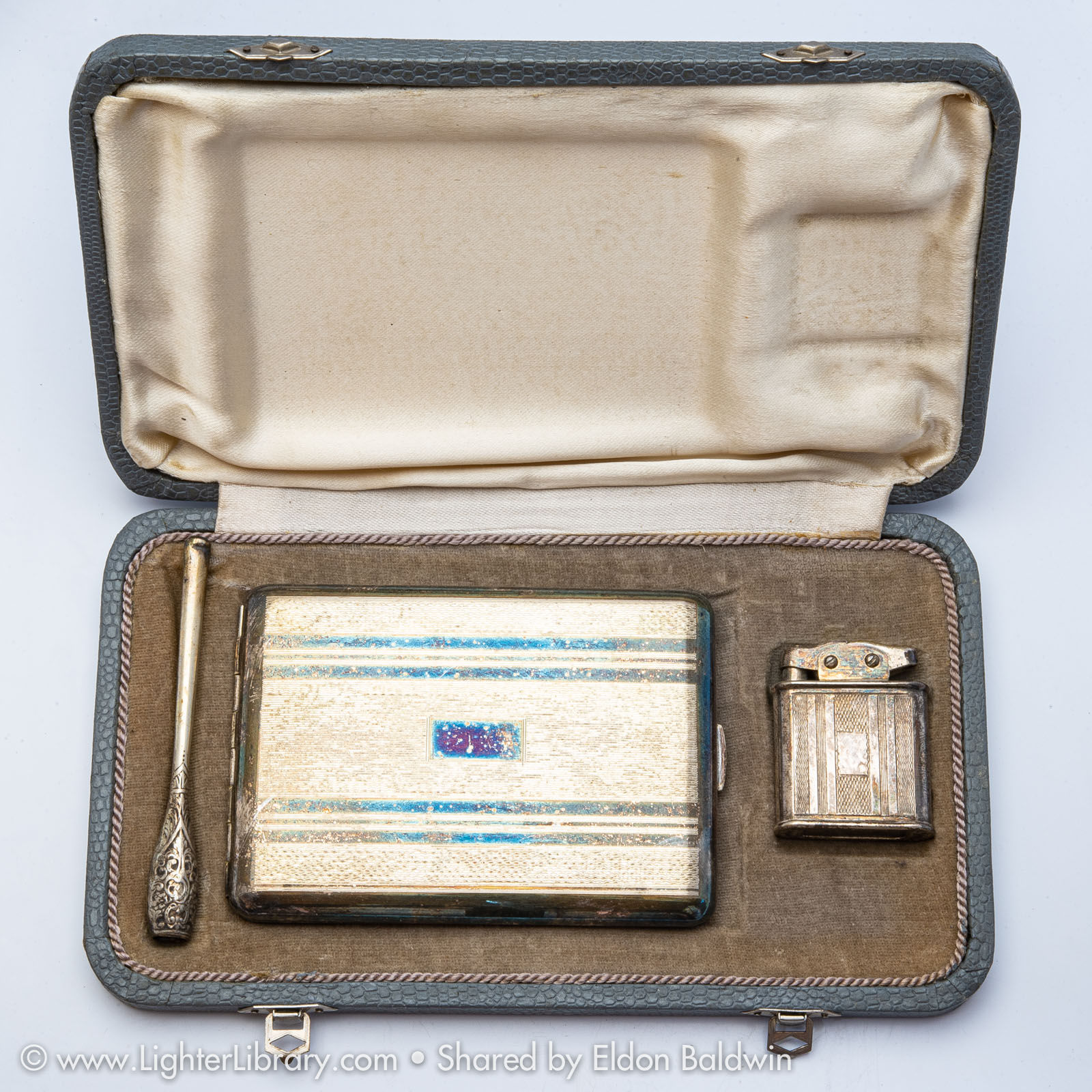 lighter with cigarette case & holder