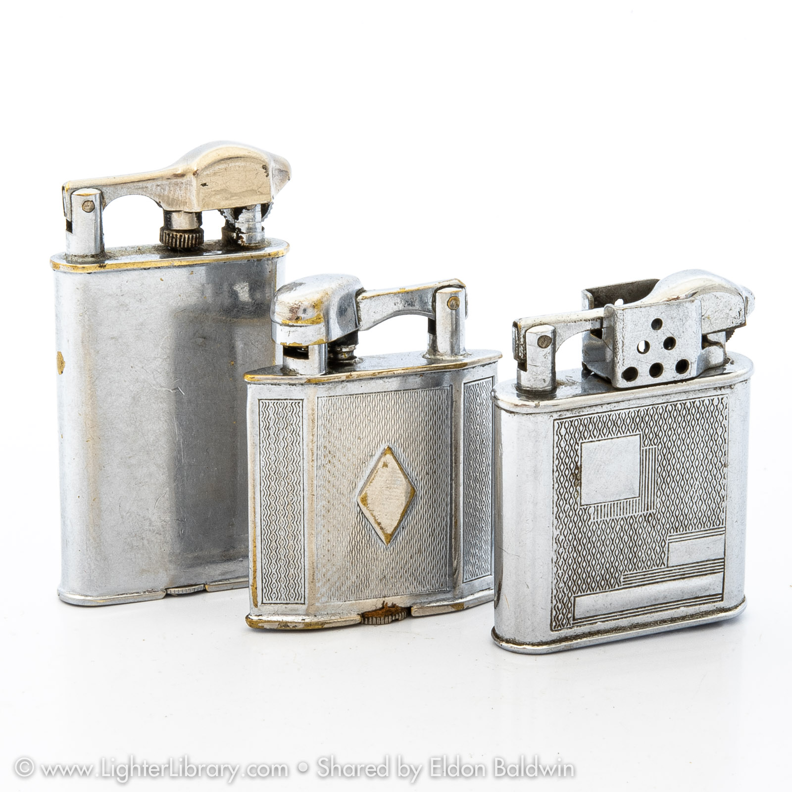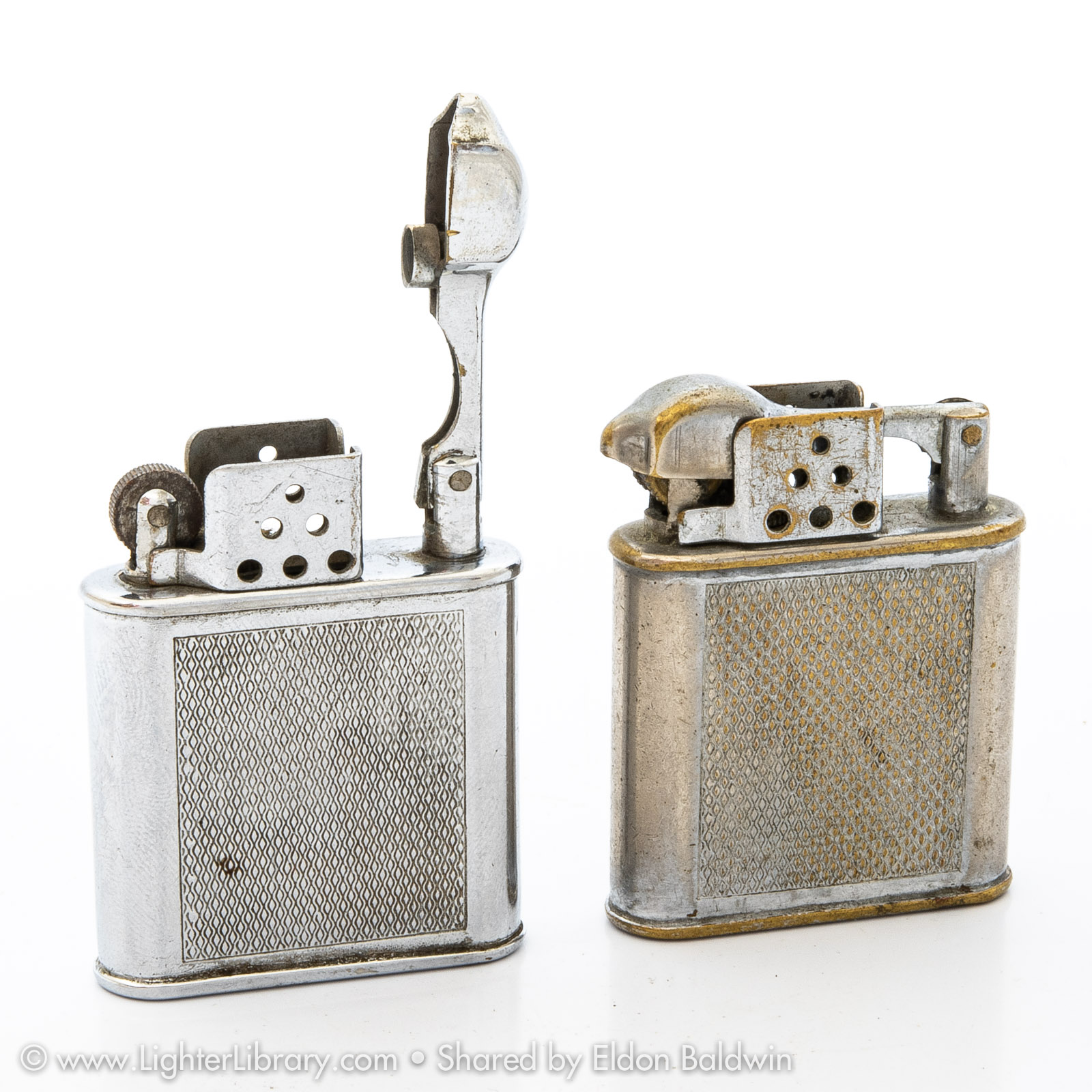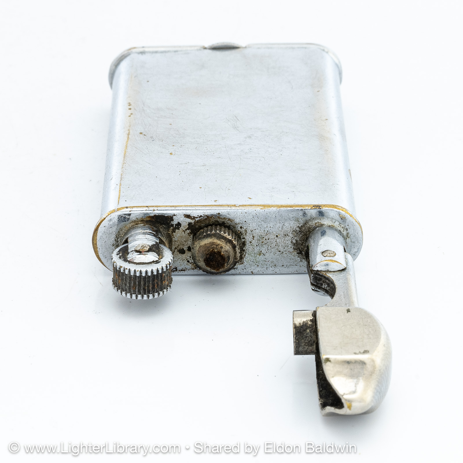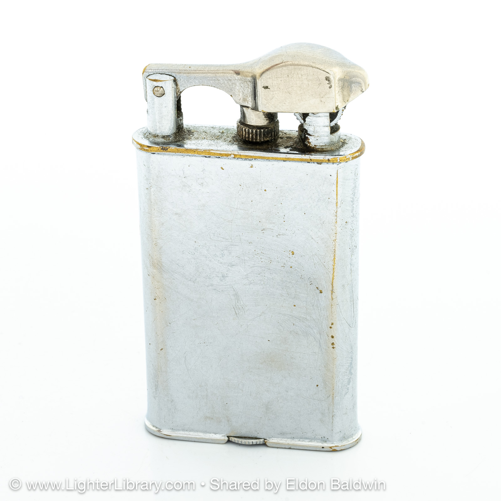 Produced during the 1930s, Polo single bar lift arm models are largely undocumented. Factory-assigned names for these Polo models are currently unknown, "single bar lift arm" is simply a physical description. Different models were produced with straight and angled snuffers. Straight snuffer models were offered in at least two sizes, with optional wind guard, and screw-on bases for table use. The angled snuffer models have this shape because of the unique off-center orientation of the thumbwheel. (EB)
