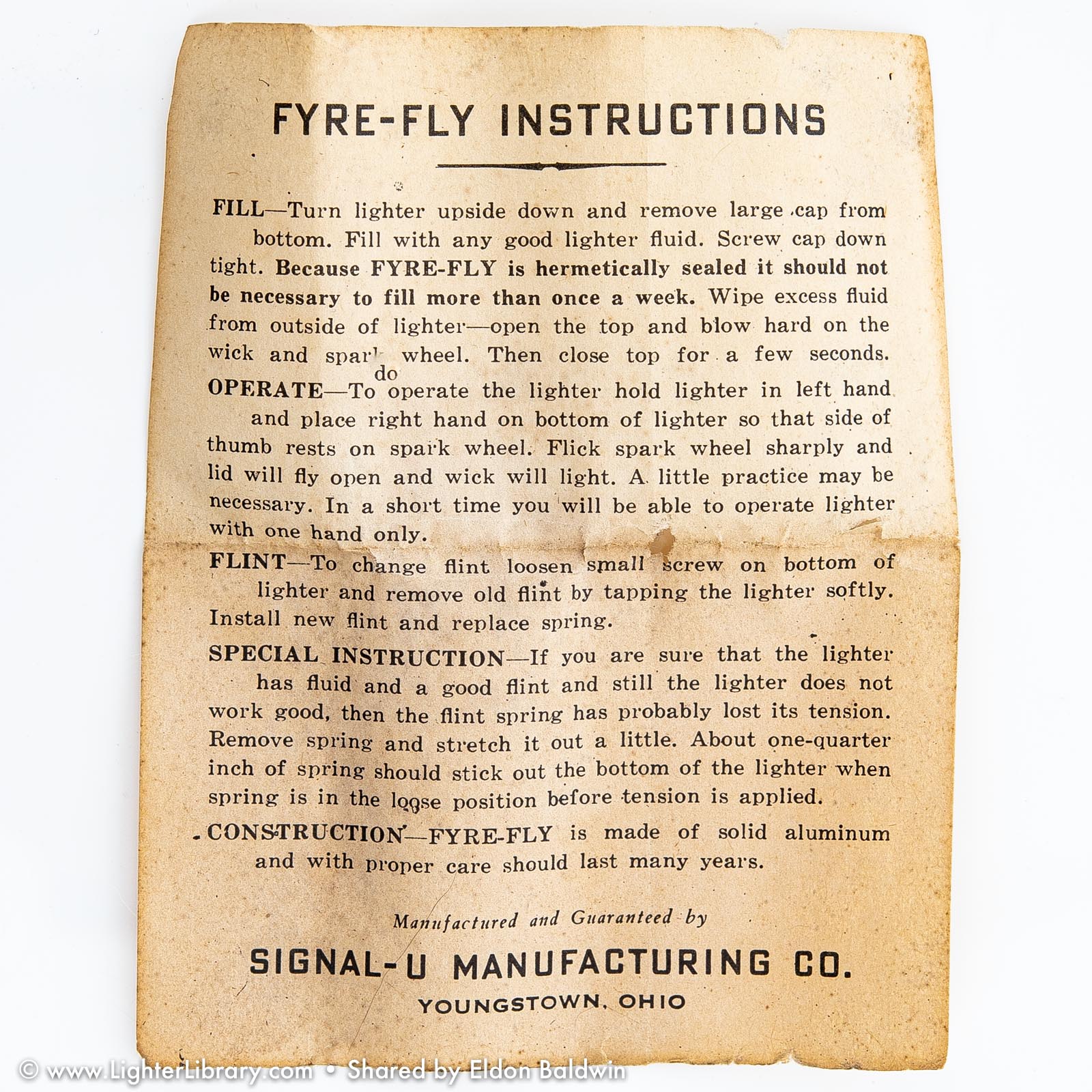 manufacturer instruction sheet