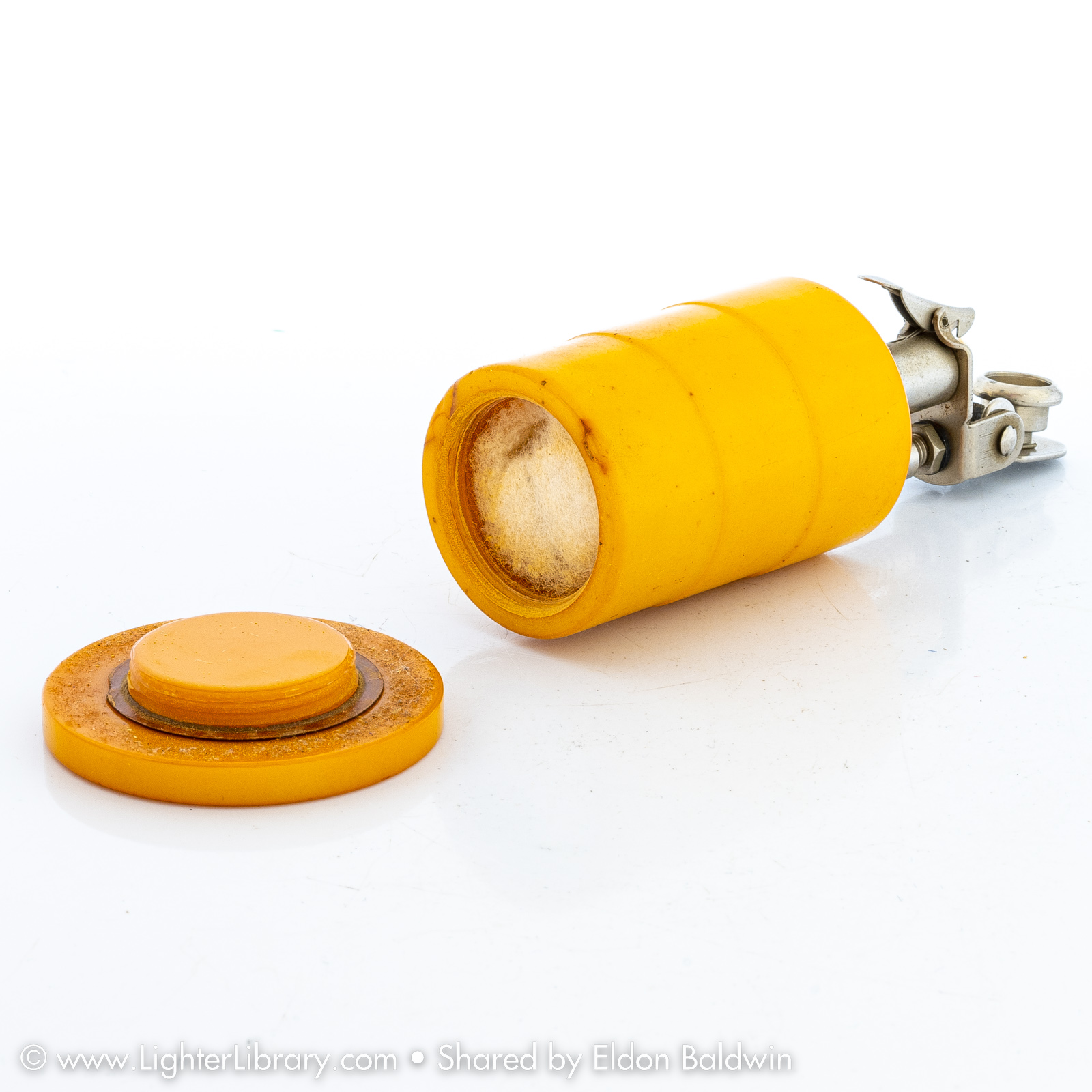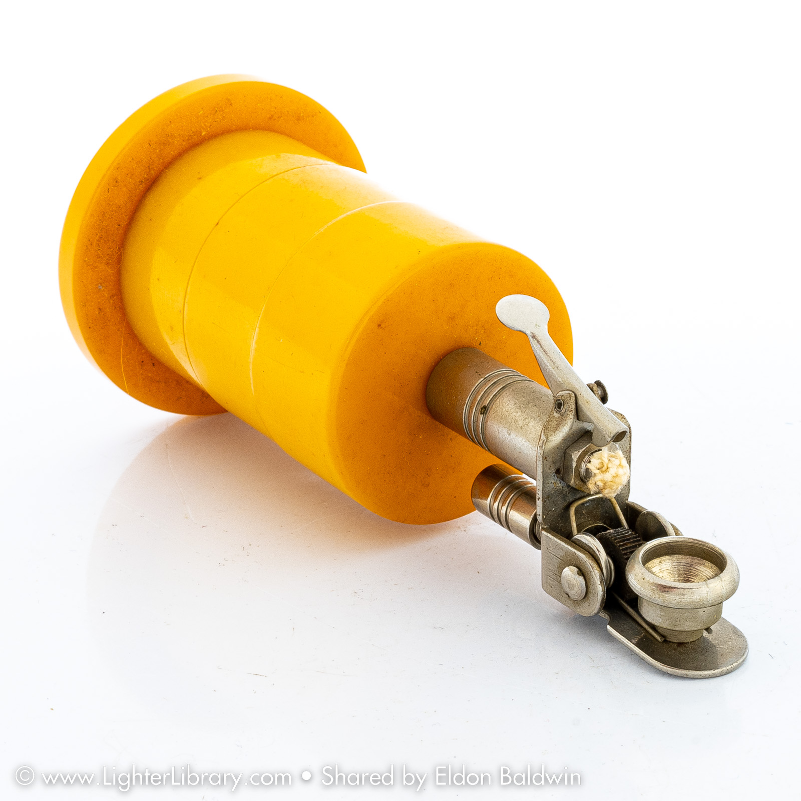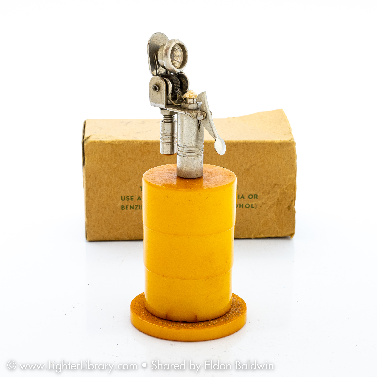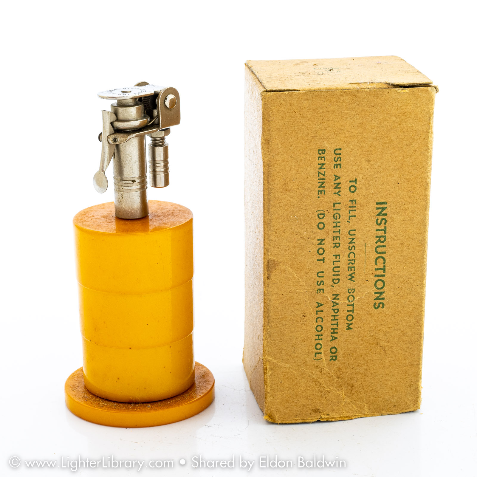 Strikalite semi automatic table lighters are copies of the Quercia Éclair manufactured in the United States from the mid-1930s until the early 1940s. Most commonly seen with bakelite and catalin finishes, glass and wood cased options were also offered. (EB)
