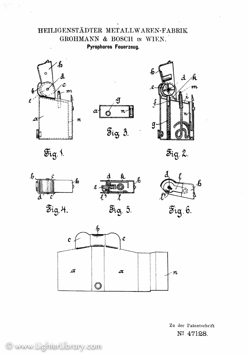 These semi-automatic lighters were manufactured by Heilgenstäder Metallwaren-Fabrik, a Viennese producer of cigarettes cans, snuffboxes, iron ware, and bronze ware.